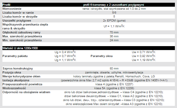 • 5-komorowy profil o szerokości zabudowy 70 mm zapewnia doskonałe parametry cieplne;