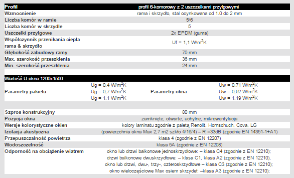 • 5-komorowy profil o szerokości zabudowy 70 mm zapewnia doskonałe parametry cieplne;