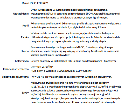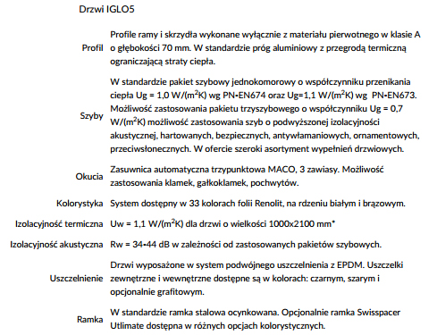 • Wysoki stopień bezpieczeństwa zapewniony dzięki wysokiej jakości okuciom drzwiowym.