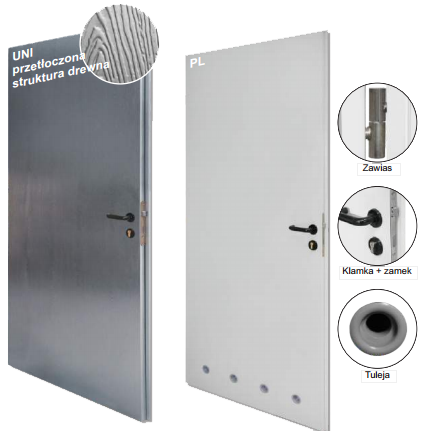 Prosta a zarazem solidna konstrukcja skrzydła (blacha stalowa ocynkowana, malowana proszkowo, wypełniona spienionym polistyrenem) idealnie nadaje się do biur, piwnic, magazynów, pomieszczeń socjalnych czy kotłowni.