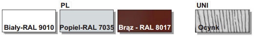 • materiał - blacha stalowa ocynkowana (UNI), blacha stalowa ocynkowana malowana proszkowo (PL)