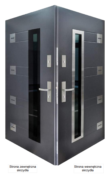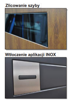 Skrzydło wykonane w nowatorskiej technologii tłoczenia polegającej na mocowaniu szyby bezpośrednio na płaszcz skrzydła w przetłoczeniu, dzięki czemu płaszczyzna szyby jest równa z płaszczyzną skrzydła. stanowią bardzo ważny element dekoracyjny.
