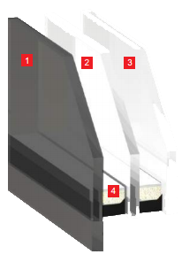 Od zewnętrznej strony zastosowano szybę hartowaną, barwioną w masie z czarną ramką, bez ramki przyszybowej.