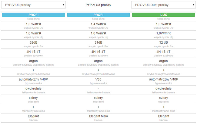 • Standardowo wyposażone w energooszczędny pakiet szybowy U3.