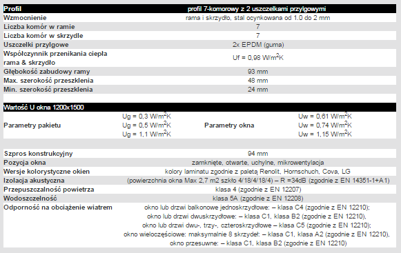 • głębokość zabudowy 93 mm, to najszerszy system z dostępnych na rynku o współczynniku izolacyjności Uf=0,98 W/m2K;